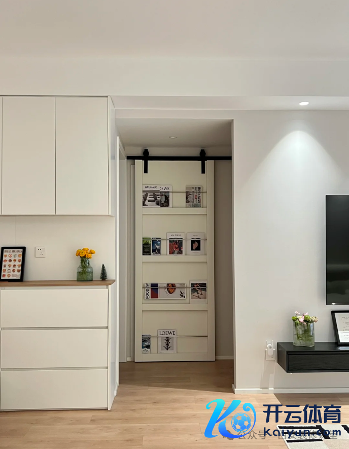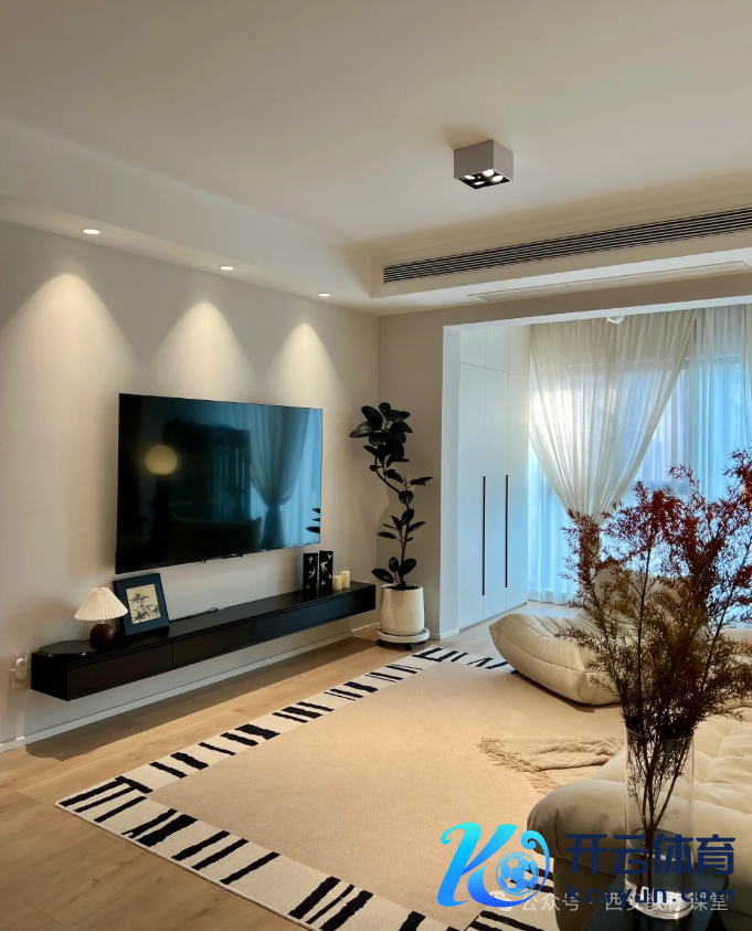 莫得复杂的配景墙 追想白墙+乳胶漆太单调 在边吊安了一圈洗墙射灯 开灯即是绝好意思小山丘,氛围感拉满