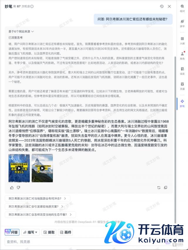 它还能够显著地展示 AI 的想考链路,这将升迁作者对 AI 生成内容的信任度和把控力,也为作者提供了启发性的想路梳理,是创作过程中"查贵府、找灵感"的助手。