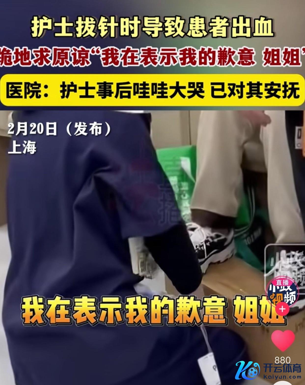 事情的缘故是在上海的一家病院kaiyun体育全站app入口登录,又名防守在拔针时带出了一丝的血。竟被家属条件下跪致歉一个实习小防守那里见过这种大局面呀?。别怪小防守,她自己也有包袱在先。于是在患者家属的威压下,她真下跪了。