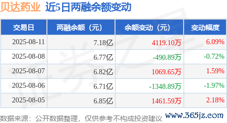 本站讯息,8月11日,贝达药业(300558)融资买入1.05亿元,融资偿还6360.88万元,融资净买入4149.78万元,融资余额7.11亿元,近20个交游日中有14个交游日出现融资净买入。