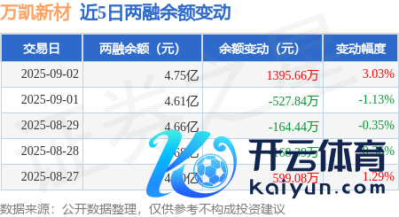 本站音讯,9月2日,万凯新材(301216)融资买入4841.87万元,融资偿还3444.67万元,融资净买入1397.2万元,融资余额4.75亿元开云体育,近20个往夙昔中有12个往夙昔出现融资净买入。