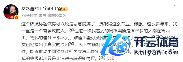 罗永浩发文称:这样多年来,我一直是一个有争议的东谈主, 但这一次我看到的汇注舆情是90%多的东谈主齐在骂西贝,骂我的连10%齐不到。难谈那些敌对我的东谈主倏得心爱了我不可? 许多网友照旧指出了委果的原因 :寰宇苦预制菜不透明久矣 。 但愿这一次的事件,能够鼓舞中国预制菜联系立法尽快收尾,再强调一遍,我不反对预制菜, 我的终极诉求仅仅让破钞者获取知情权。